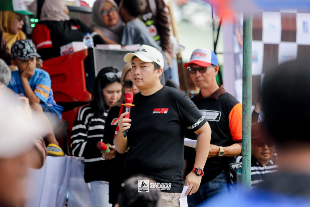 Franco Escobar, Ketua IMI Kepahiang, menyampaikan laporan kegiatan dan terima kasih kepada semua pihak yang telah mendukung suksesnya Kepahiang GTX Series 2026 Putaran #1, Open Grasstrack Escobar Cup 06, dalam momentum HUT ke 22 tahun Kepahiang.Bupati Kepahiang, H. Zurdi Nata, menyampaikan sambutan dan membuka secara resmi Open Grasstrack Escobar Cup 06.Juara Umum Open Grasstrack Escobar Cup 06 Kategori OPEN Asal Lampung: Opick Beke No. Start 197 (Tim DIMAS PS x ACEL171 x ZCND x MB pro).